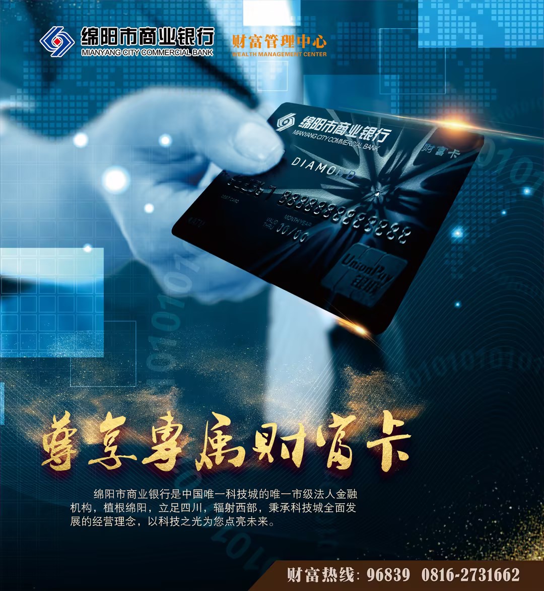绵阳市商业银行财富管理中心,为您提供健康关爱、子女教育、VIP出行、法税会咨询,保管箱,会客厅及专属沙龙等金融服务。